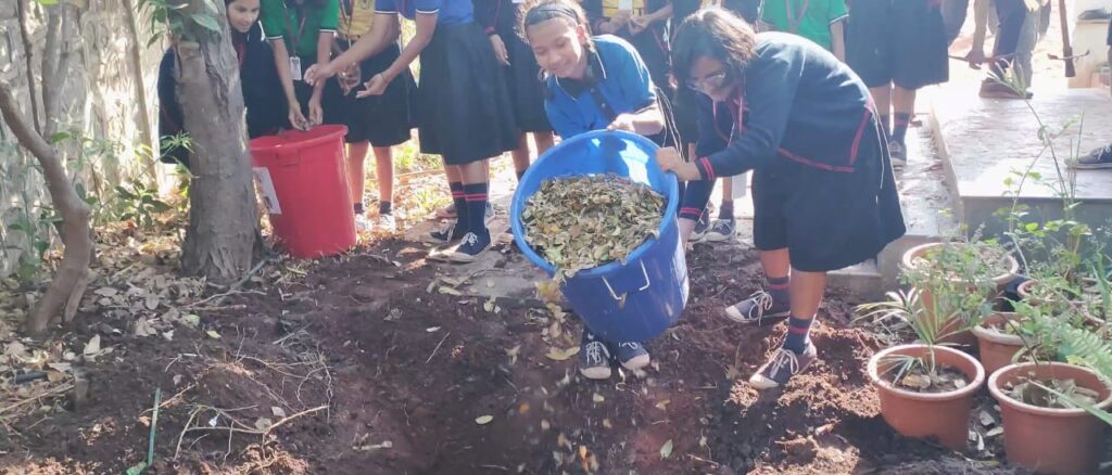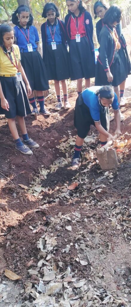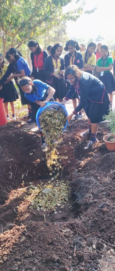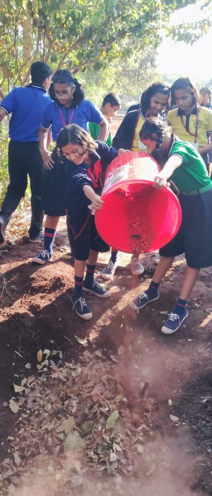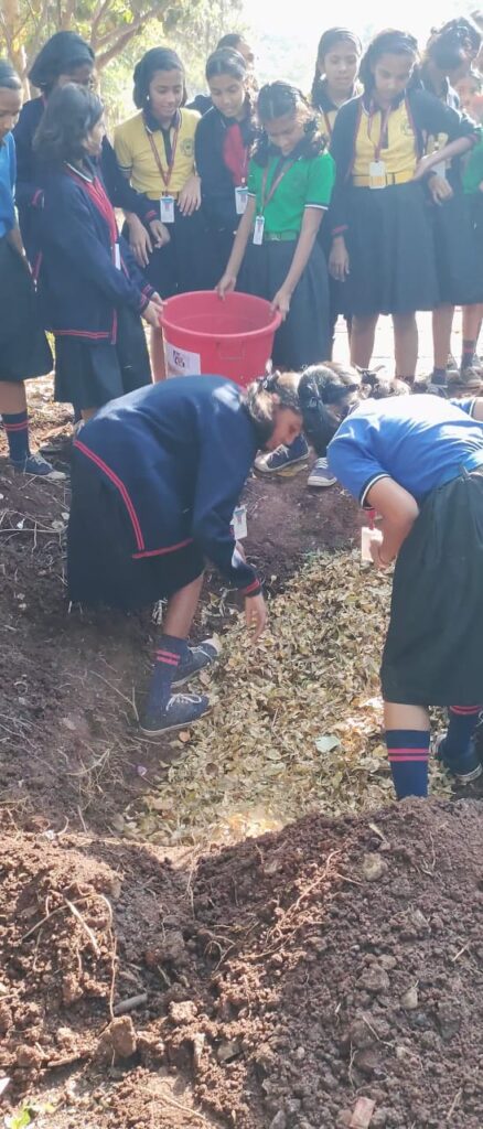 1. Collection of Organic Waste: Students collected food waste, leaves, and other organic materials from the school garden.
